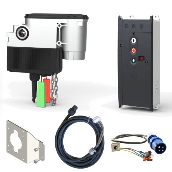 Kompletny zestaw automatyki do bram segmentowych garażowych i przemysłowych, renomowanej niemieckiej firmy GFA ELEKTROMATEN. Napęd wyposażony w falownik (przetwornicę częstotliwości) co daje miękki start i miękkie zatrzymanie bramy oraz płynną regulacje prędkości napędu. Znajduje zastosowanie w obiektach wymagających szybkiego otwarcia bramy np. pogotowie, straż pożarna.