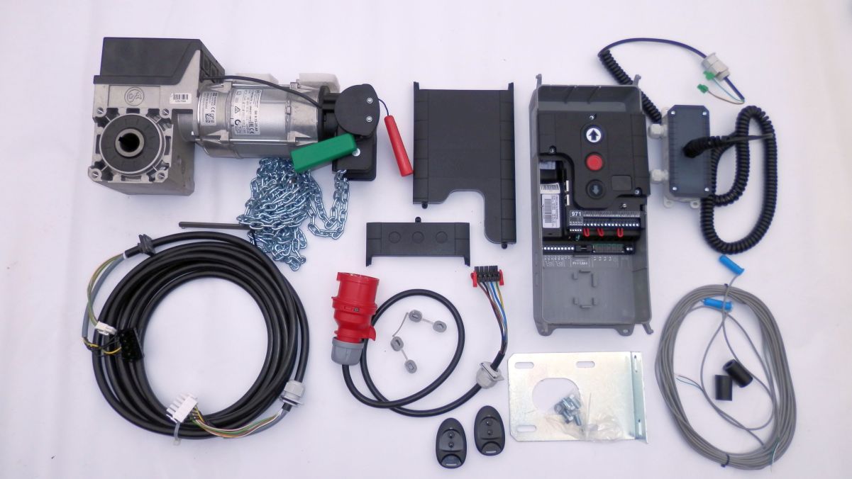 Uwaga: w zestawie łańcuch awaryjnego otwierania długości 4m.b. (łańcuch tworzy pętle o długości 2m, co pozwala na obsługę bramy, której wał jest na maksymalnej wysokości około 3,5m) Potrzebujesz dłuższy łańcuch? – skontaktuj się, istnieje możliwość dokupienia 30zł za 1m.b.