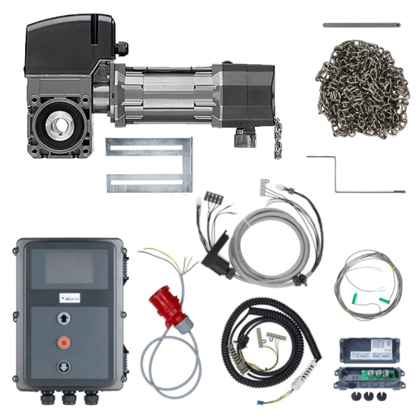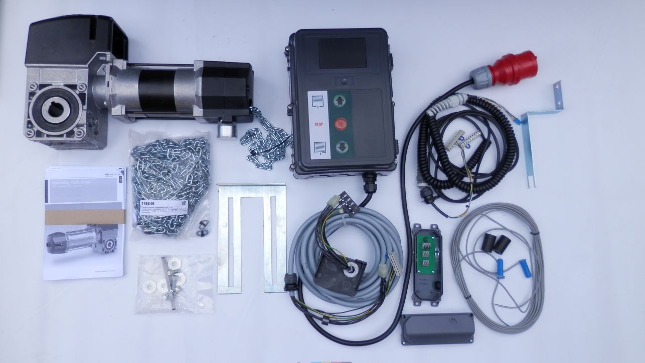 Kompletny zestaw automatyki do bram segmentowych, firmy Marantec MFZ Ovitor. Zalecany do bram o maksymalnej powierzchni 25m2. W zestawie znajduje się: napęd do bramy STA 1-10-24 KE, centrala CS320 służąca do sterowania napędem, mechanizm awaryjnej obsługi ręcznej  pozwalający za pomocą łańcucha otworzyć/zamknąć bramę w przypadku braku prądu, zestaw fotokomórek z okablowaniem zabezpieczający przed zgnieceniem obiektu znajdującego się w świetle bramy (OSE), kable połączeniowe, elementy montażowe, instrukcja.  Napęd przystosowany jest do wału o średnicy 25,4mm (1″). Zestaw zasilany jest napięciem  400V.