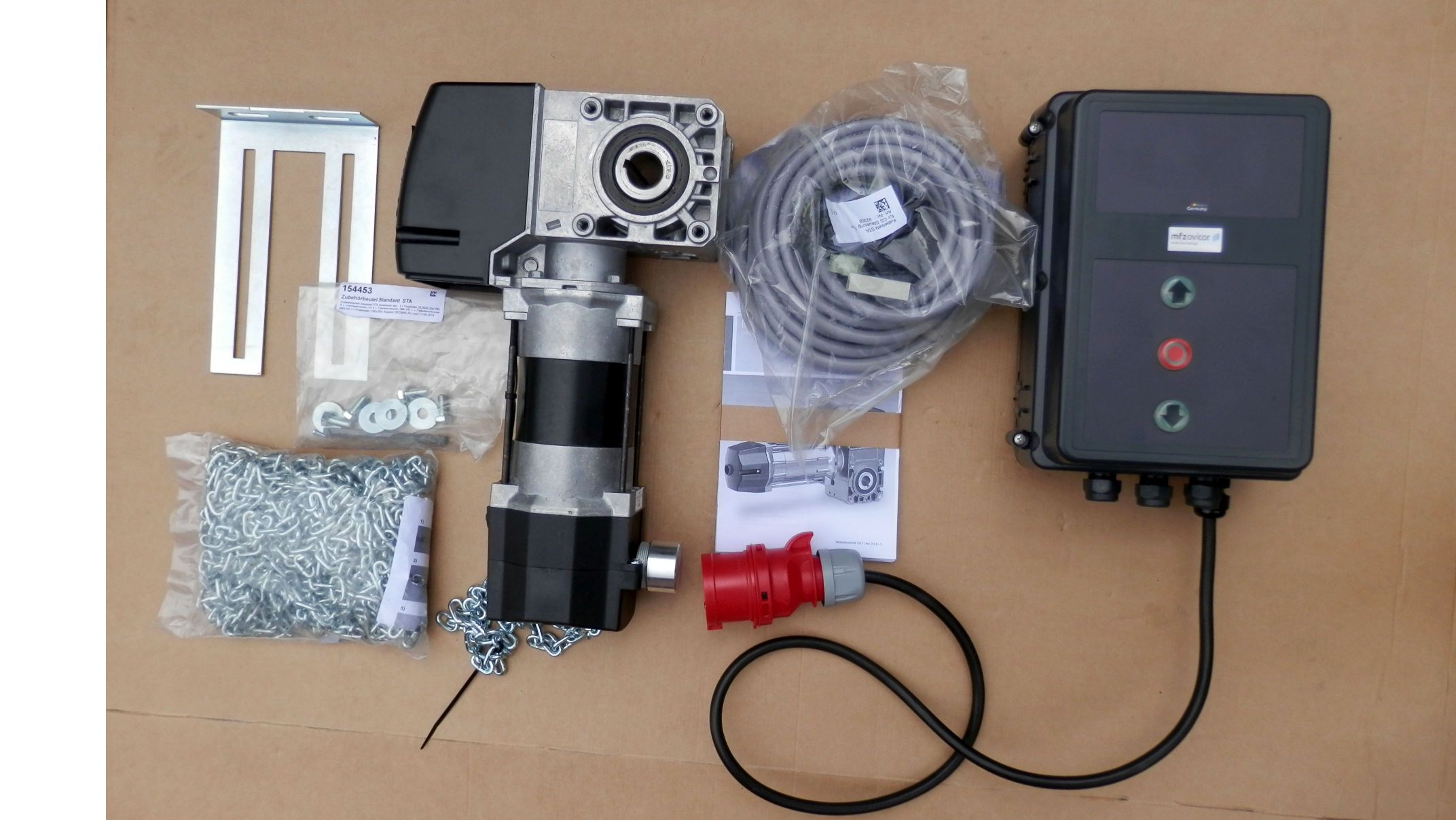 Kompletny zestaw automatyki do bram segmentowych, firmy Marantec MFZ Ovitor. Zalecany do bram o maksymalnej powierzchni 36m2. W zestawie znajduje się: napęd do bramy STA 1-11-24 KE, centrala CS320 służąca do sterowania napędem, mechanizm awaryjnej obsługi ręcznej  pozwalający za pomocą łańcucha otworzyć/zamknąć bramę w przypadku braku prądu, przewody połączeniowe, elementy montażowe, instrukcja.  Napęd przystosowany jest do wału o średnicy 25,4mm (1″). Zestaw zasilany jest napięciem 3N~400V.