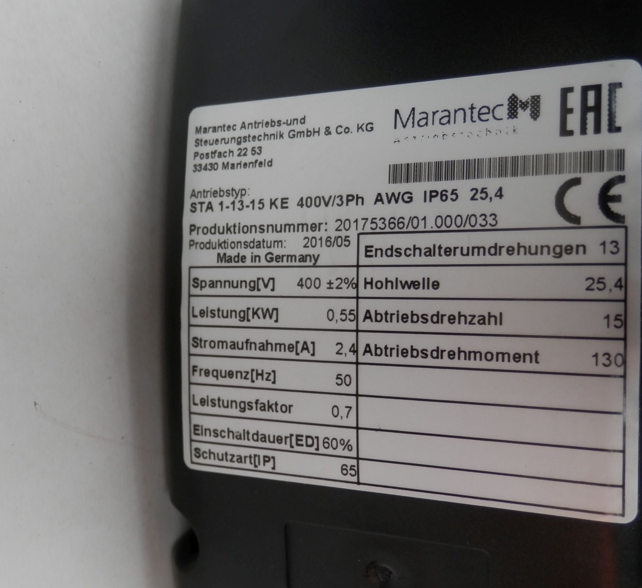 Napęd Marantec MFZ STA 1-13-15 do dużych bram segmentowych przemysłowych. Zalecany do bram o maksymalnej powierzchni 36m2. Wyposażony w mechanizm awaryjnej obsługi ręcznej pozwalający za pomocą łańcucha otworzyć/zamknąć bramę w przypadku braku prądu. Napęd przystosowany jest do wału o średnicy 25,4mm (1″).